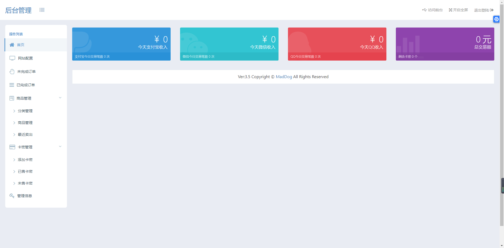 EDLM个人发卡网程序是由MadDog使用Thinkphp开发的一个站长收款免签约自助提卡系统;具有安全、稳定、不加收任何费用、直接到账等特点的『 一站式』售卡系统。