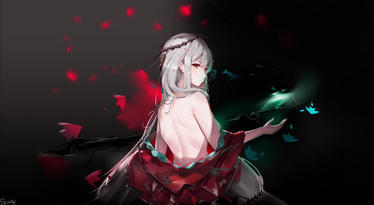 明日方舟斯卡蒂 背中露背 回眸 唯美好看4k动漫壁纸 -静鱼客栈