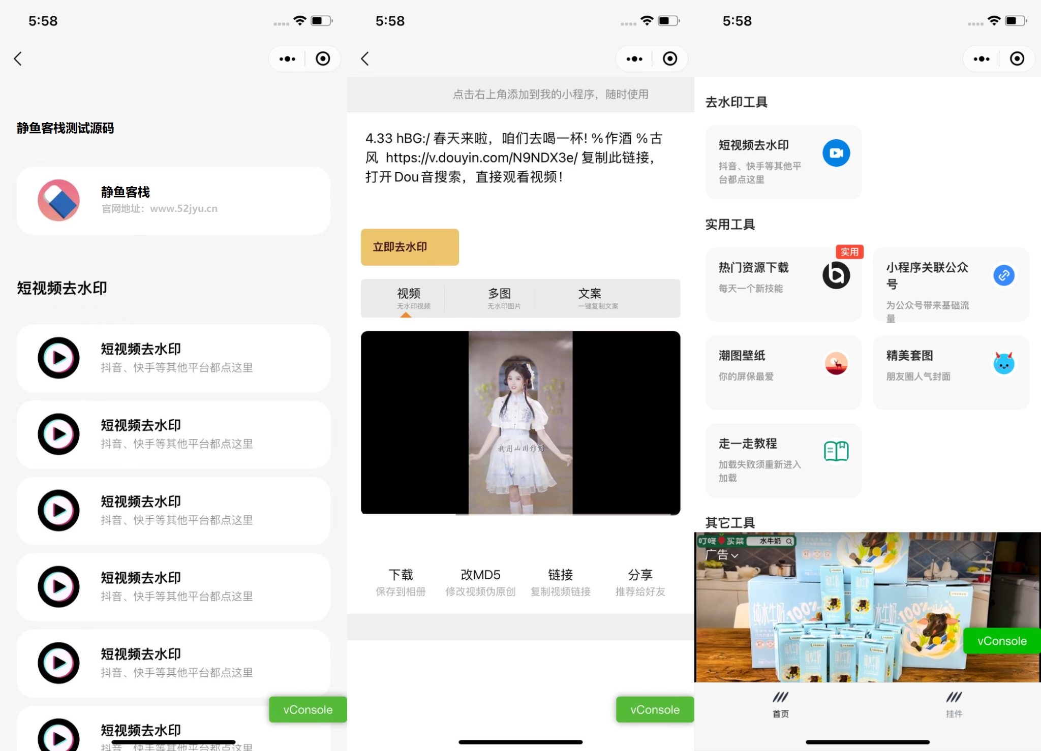 静鱼客栈 APP/小程序/源码 多接口带头像挂件制作短视频去水印微信小程序源码下载支持多种流量主 https://wp.muooy.cn/17049.html