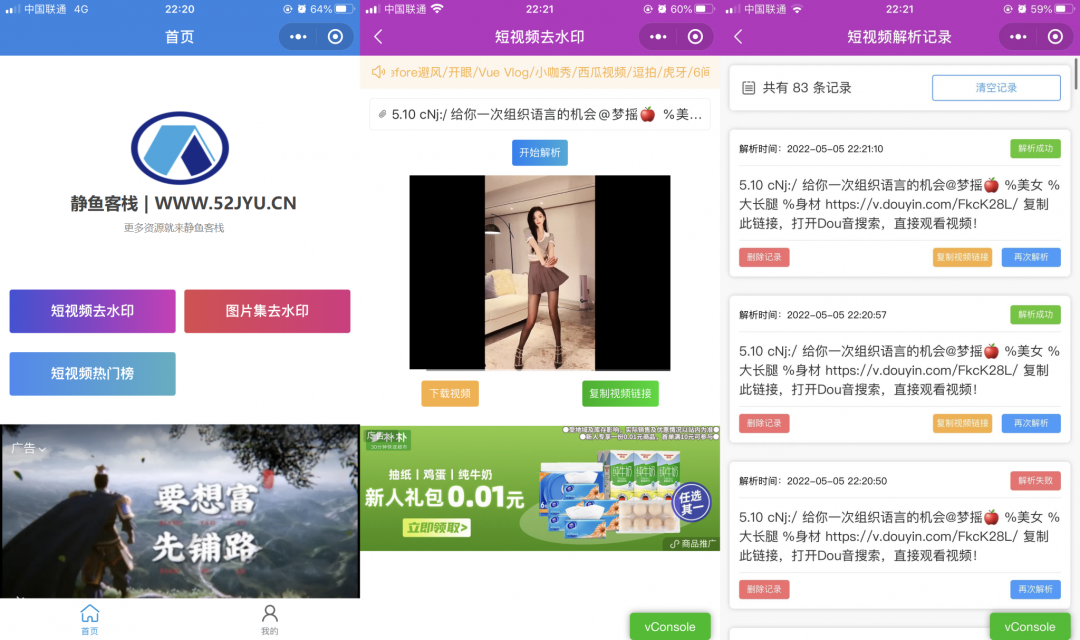 支持各大平台短视频去水印 支持图集去水印 另外还有一个功能也就相当于抖音一样刷短视频 偷偷告诉你们哟,刷的短视频都是热门小姐姐哟!惊不惊喜意不意外 资源下载此资源下载价格为6.6U点点击检测网盘有效后购买,VIP免费立即升级客服QQ:305582964 联系邮箱:305582964@qq.com