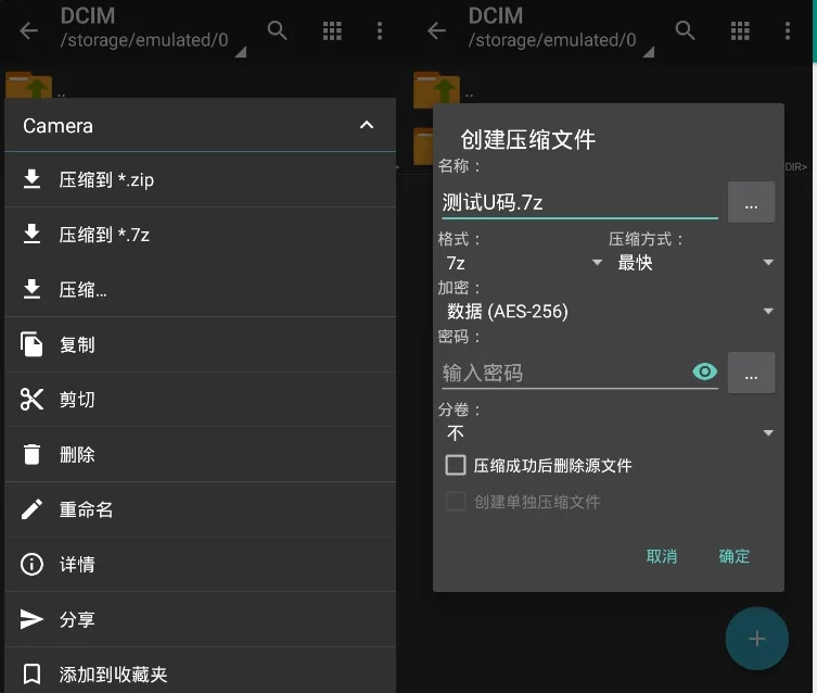 编辑压缩文件:从压缩文件内添加/删除文件;>解压分卷压缩文件;