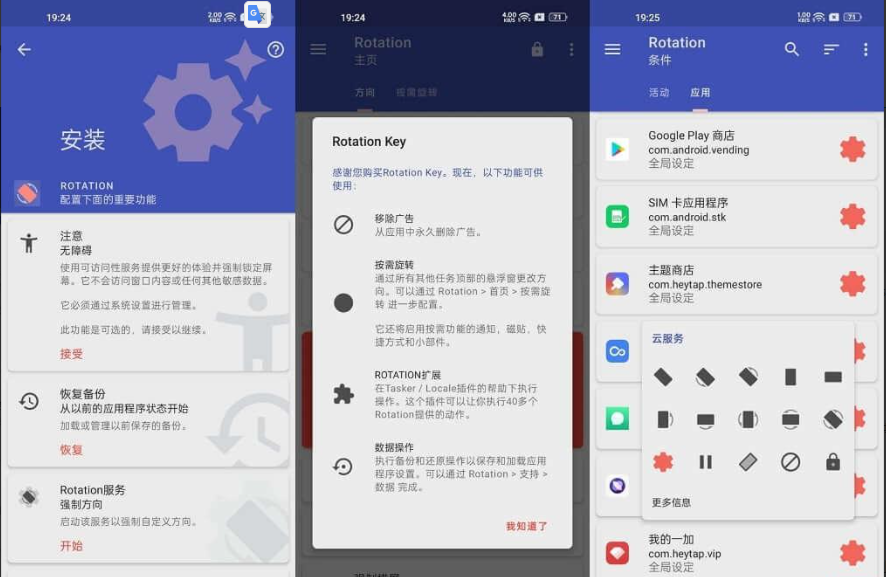 一款功能强大的屏幕显示自定义控制软件–Rotation Pro。软件功能强大,可以随意控制软件屏显示,无论是横屏还是竖屏,都可以随意选择,非常的方便。软件支持Android的所有模式,完全覆盖了应用程序和系统设置,也就是说手机在运行什么程序,都可以修改屏幕的横竖。