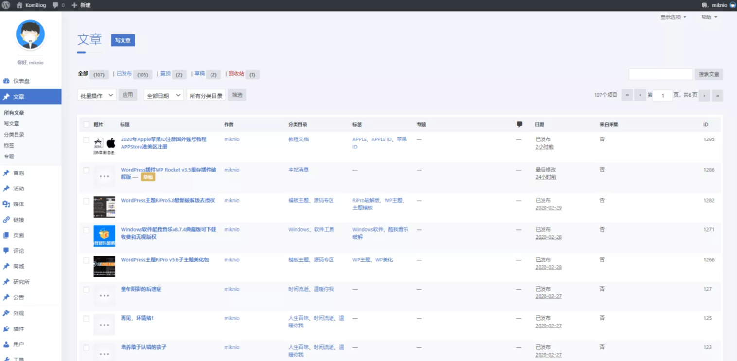 图片/缩略图+ ID列用于帖子和页面表格列表