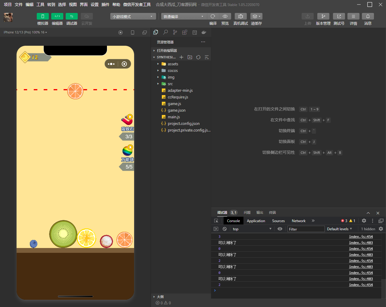 这是一款云开发版的合成大西瓜小游戏微信小程序源码,微信游戏小程序源码。该小游戏玩法简单,只需要拖动同样的水果落下合成新品众的水果,最终合成大西瓜,玩法酷似俄罗斯方块,相当于换一种形式的俄罗斯方块,简单的模式让小朋友们进入小程序后也可以轻松上手,小编无聊也去尝试了下,感觉还是有那么点意思的,集 2048+俄罗斯方块+消消乐为一体,该小程序源码附带流量主功能,用户使用吸铁石和万能球功能时需要观看激励视频广告,为站长获取广告收益,前提是需要已经开通了流量主功能才可以使用。