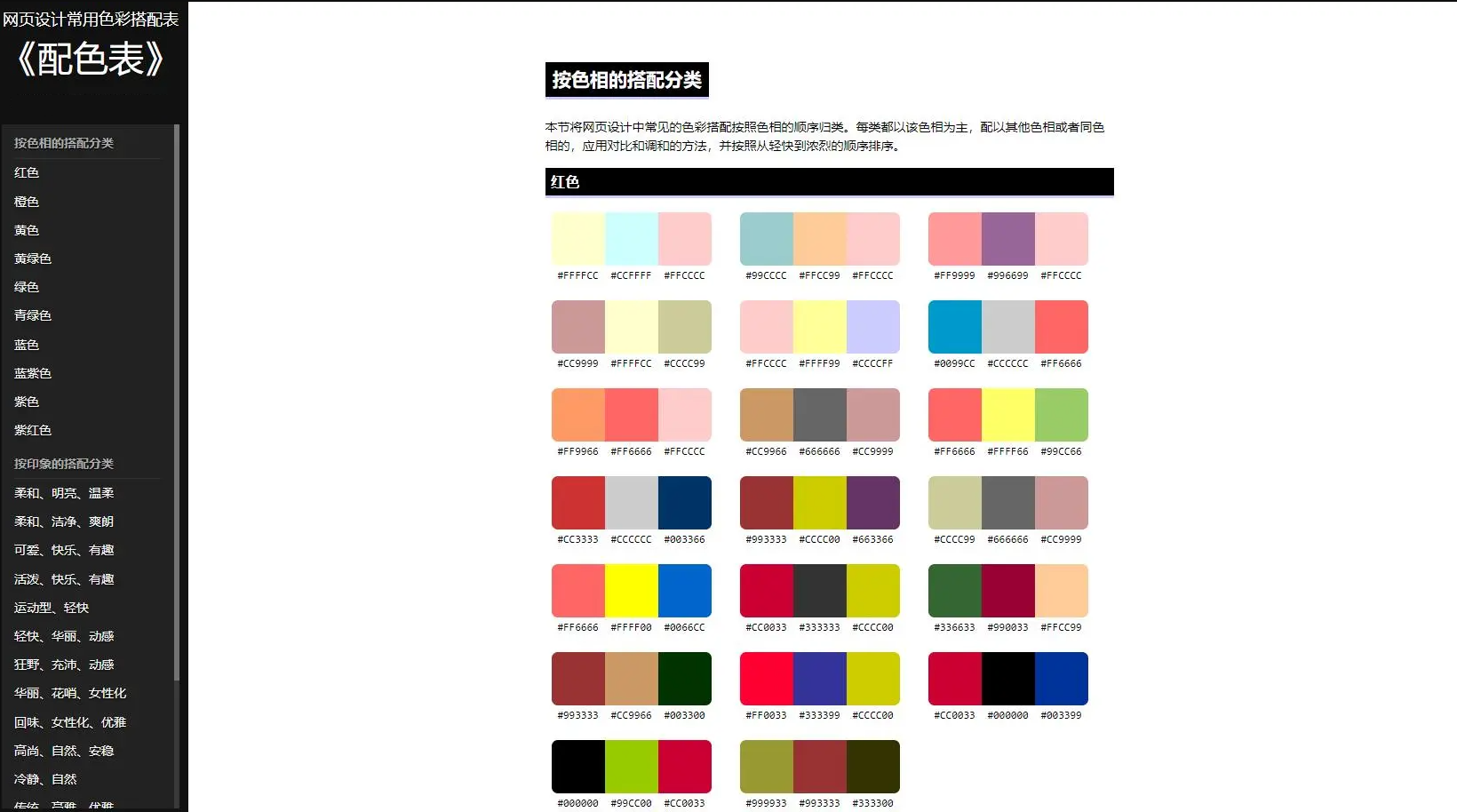 RGB颜色调色板配色表html源码分享,站长引流工具,色彩搭配看似复杂,但并不神秘。既然每种色彩在印象空间中都有自己的位置,那么色彩搭配得到的印象可以用加减法来近似估算。将网页设计中常见的色彩搭配按照色相的顺序归类。搭配起来就会得到千变万化的感觉。