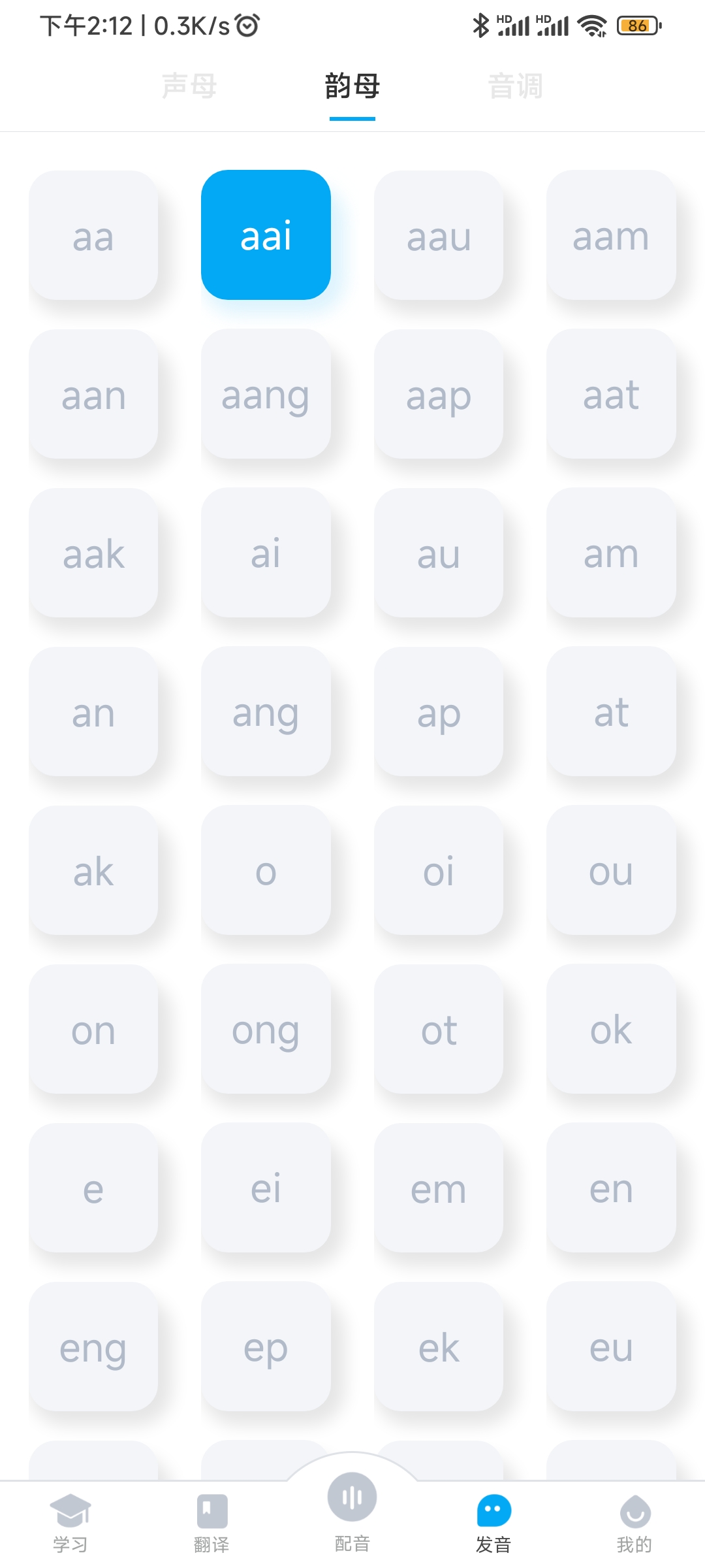 【功能介绍】 粤语真人发音教学 基础粤语拼音教学,19个声母,53个韵母和9个声调, 标准 真人粤语发音。