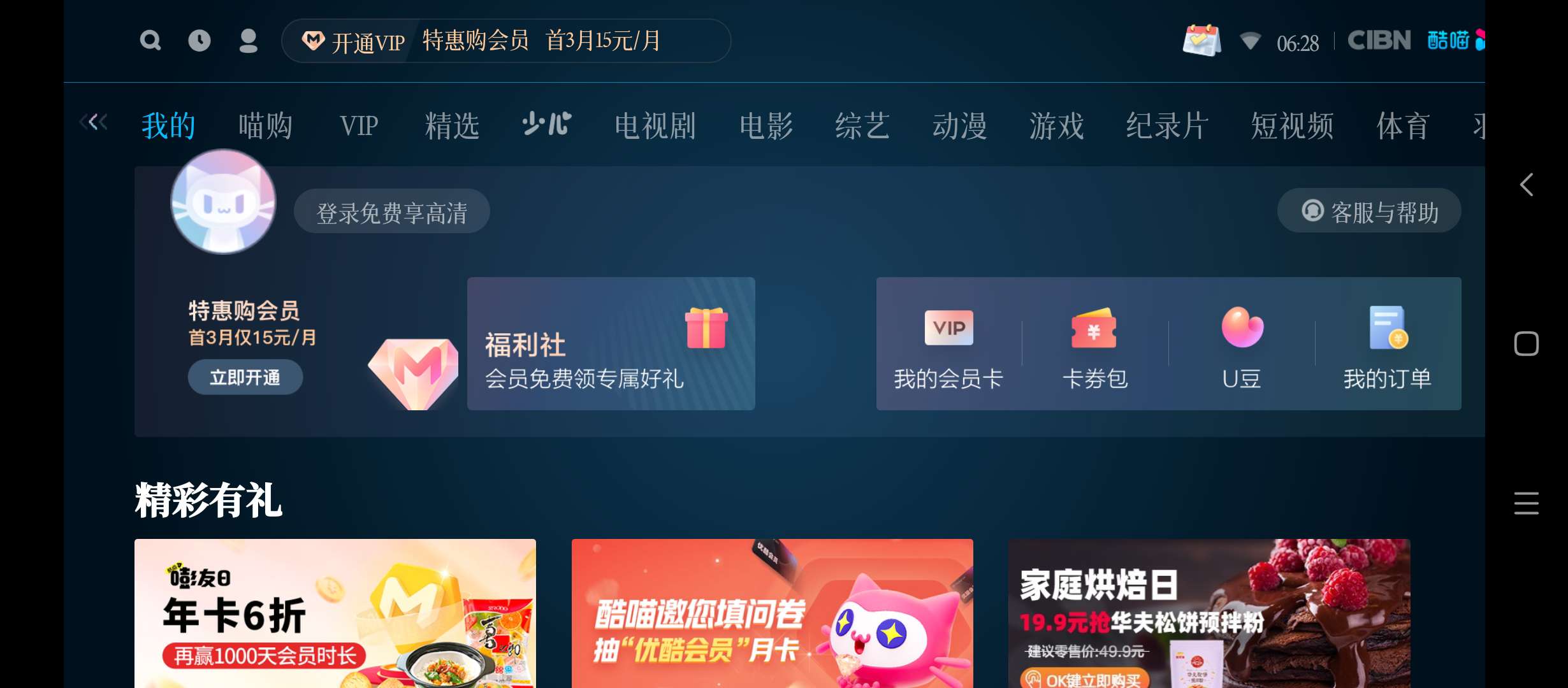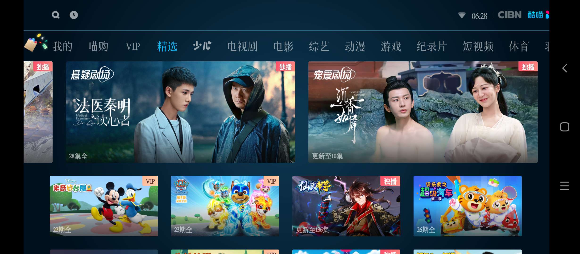 【官方介绍】:CIBN酷喵影视(包名:com.cibn.tv)是优酷内容授权正版TV端应用,优酷TV版是为Android大屏幕用户设计开发的网络视频客户端产品。通过专门为大屏幕设计的人机交互界面,为用户提供舒适休闲的视频观看体验。优酷TV版拥有丰富的节目资源, 完美适配各尺寸大屏幕,让你轻轻松松看优酷!