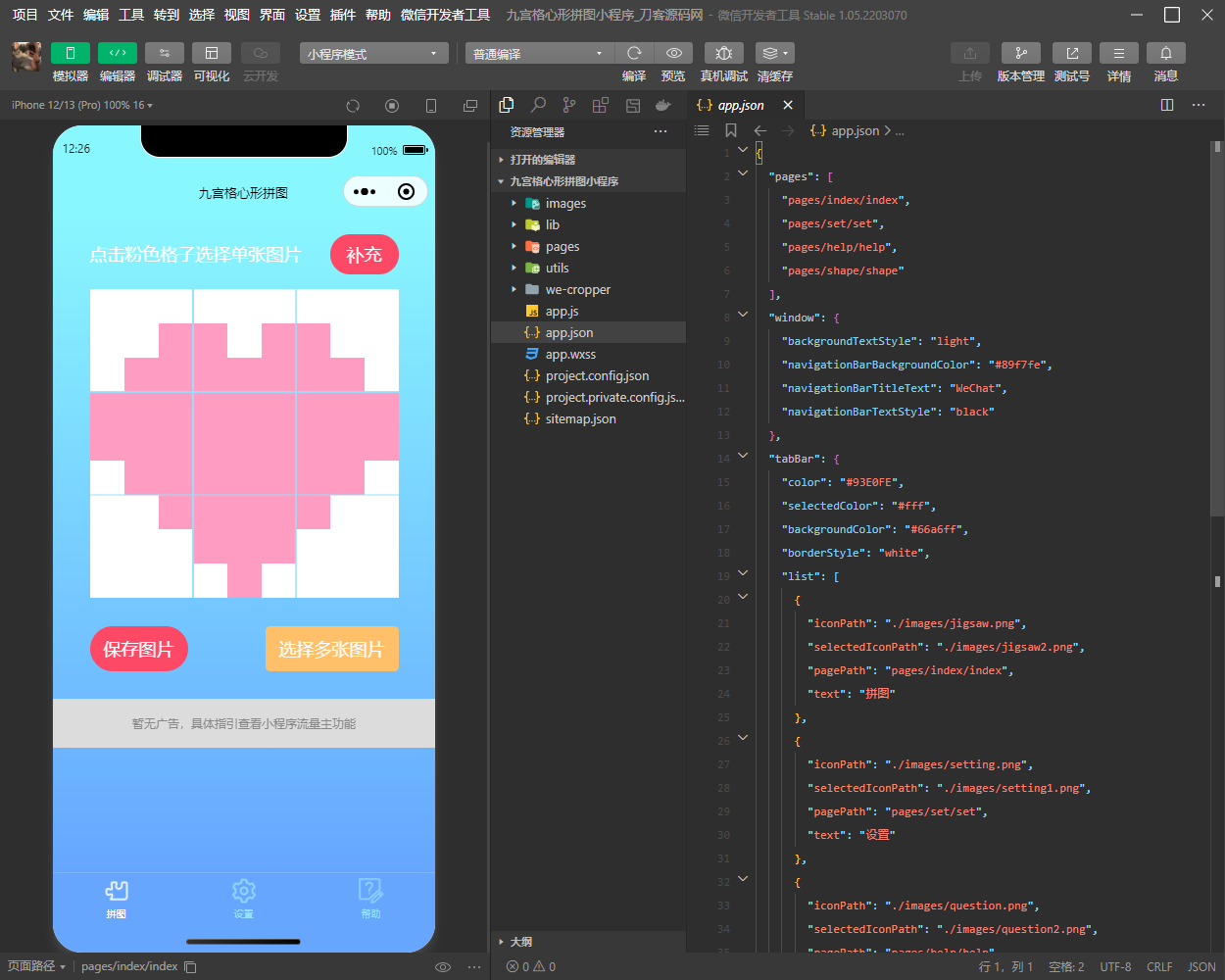 九宫格心形拼图小程序源码,带流量主微信小程序源码。可以自定义拼图形状,保存张数 自由填充图片、自由剪裁图片等。并带有流量主广告位,有需要的可以下载看看。 图片: 资源下载此资源下载价格为6.6U点点击检测网盘有效后购买,VIP免费立即升级客服QQ:305582964 联系邮箱:305582964@qq.com