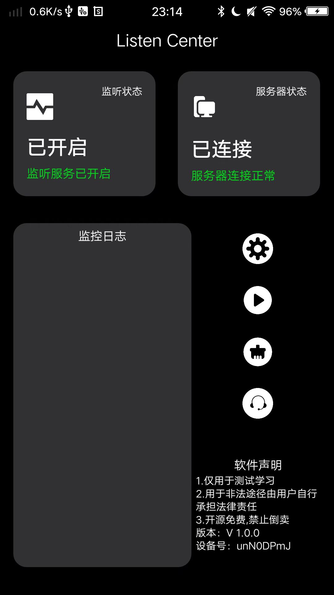 配套APP监听,无绑定无授权,真正的免费(仅免费使用,内置监听插件为第三方插件,约束不可开源代码)