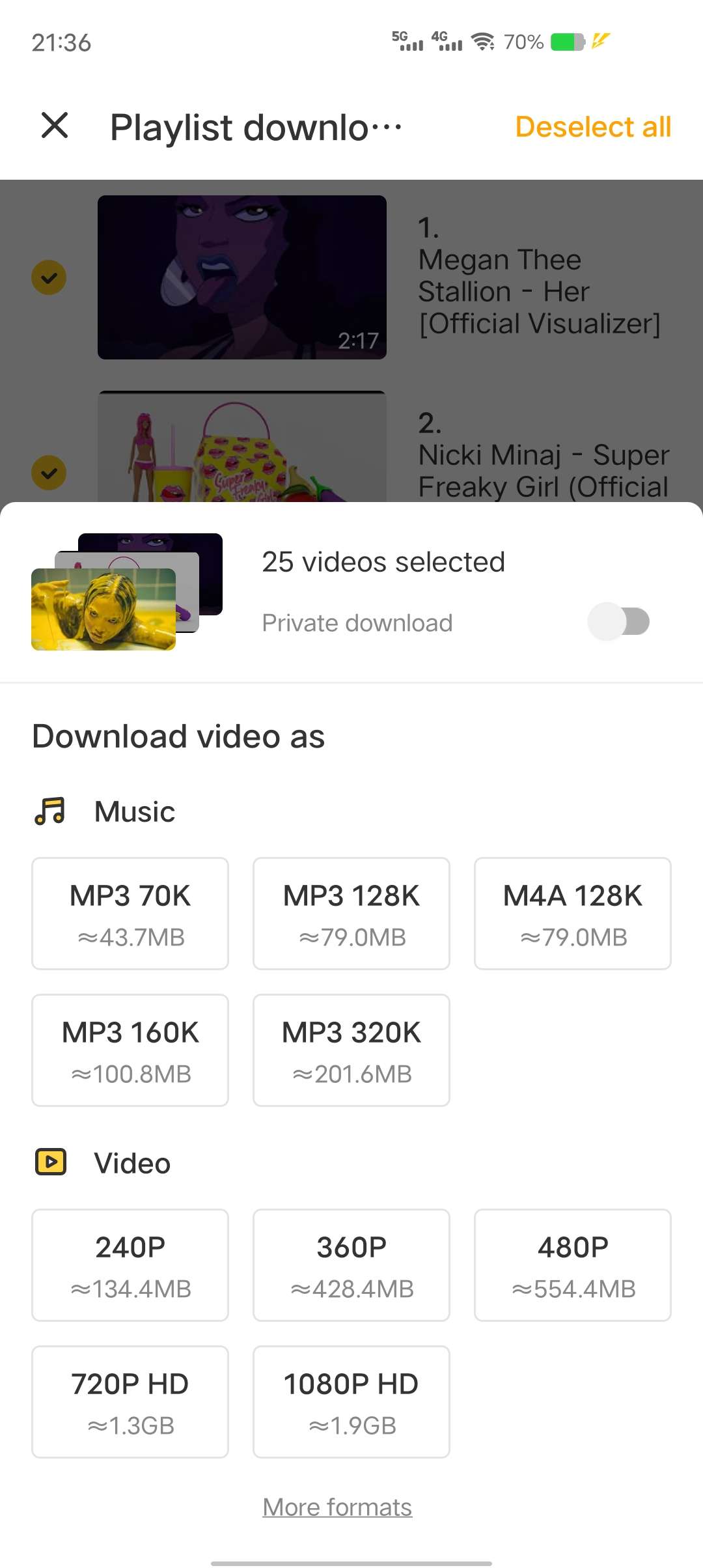 SnapTube Pro 支持多种分辨率 MP4 视频下载,比如:360P、480P、720P、1080P高清等等。可以任意下载任何 YouTube 音乐视频直接作为 MP3 格式文件。SnapTube Pro 支持关键词搜索视频。让您更方便快捷滴找到你想要的视频。SnapTube Pro 下载过程支持暂停、取消、恢复视频下载。