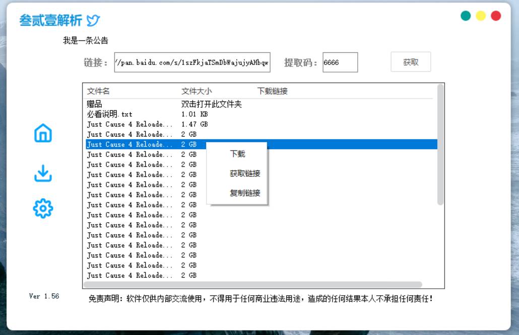 百度云不限速下载软件 叁贰壹解析 不需要登录账号就可以实现高速下载 无任何限制 内置aria2下载引擎 稳定高速多线程下载 支持断点续传 下载的速度取决于你自身 基本榨干宽带 资源下载此资源下载价格为0.1U点点击检测网盘有效后购买,VIP免费立即升级客服QQ:305582964 联系邮箱:305582964@qq.com