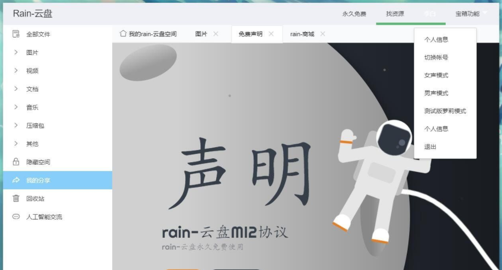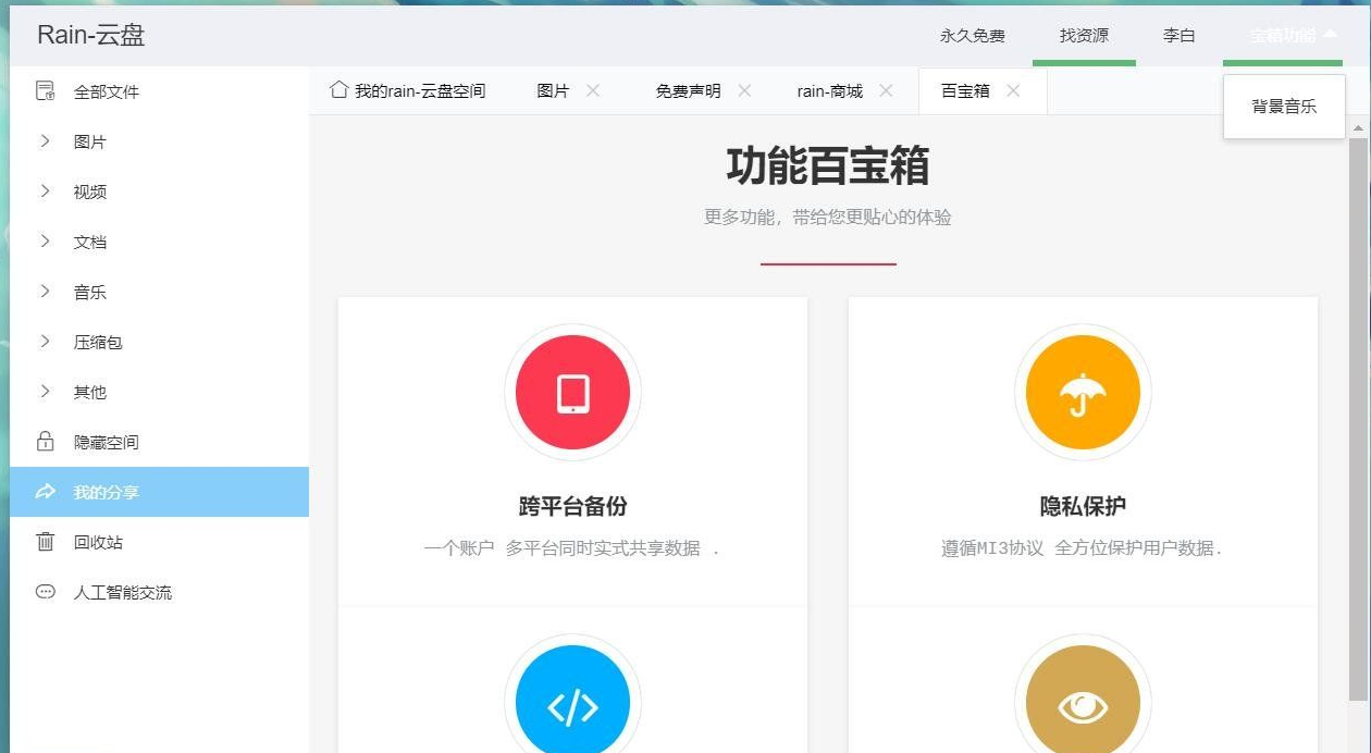 所有我就想尝试写一个页面稍微可以上台面的桌面云盘应用。那么Rain-Cloud就诞生了..