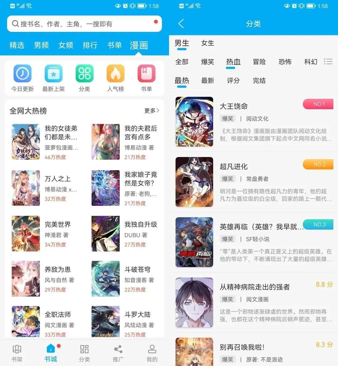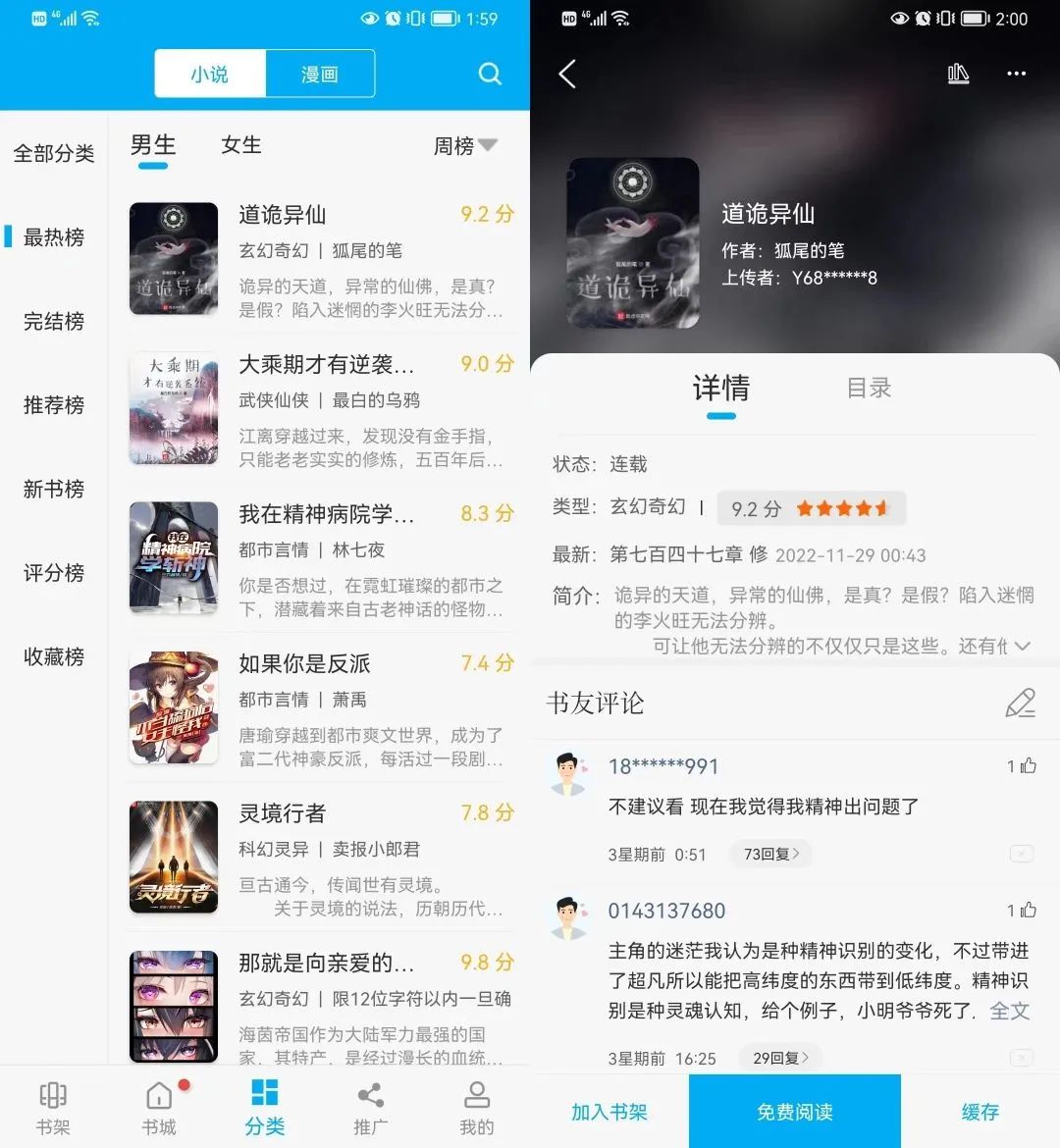 小说分类这里是按照排行榜的形式,最热 完结 新书 推荐榜等等