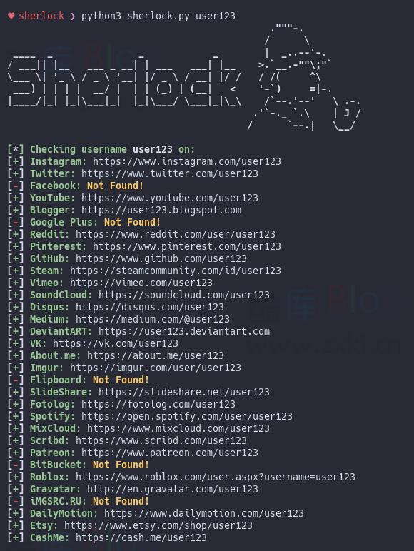 Sherlock 是一款网络爬虫工具,可根据输入的用户名爬取对应的社交帐号,目前支持 300 多个不同社交平台。本源码为Python源码,小白勿试。