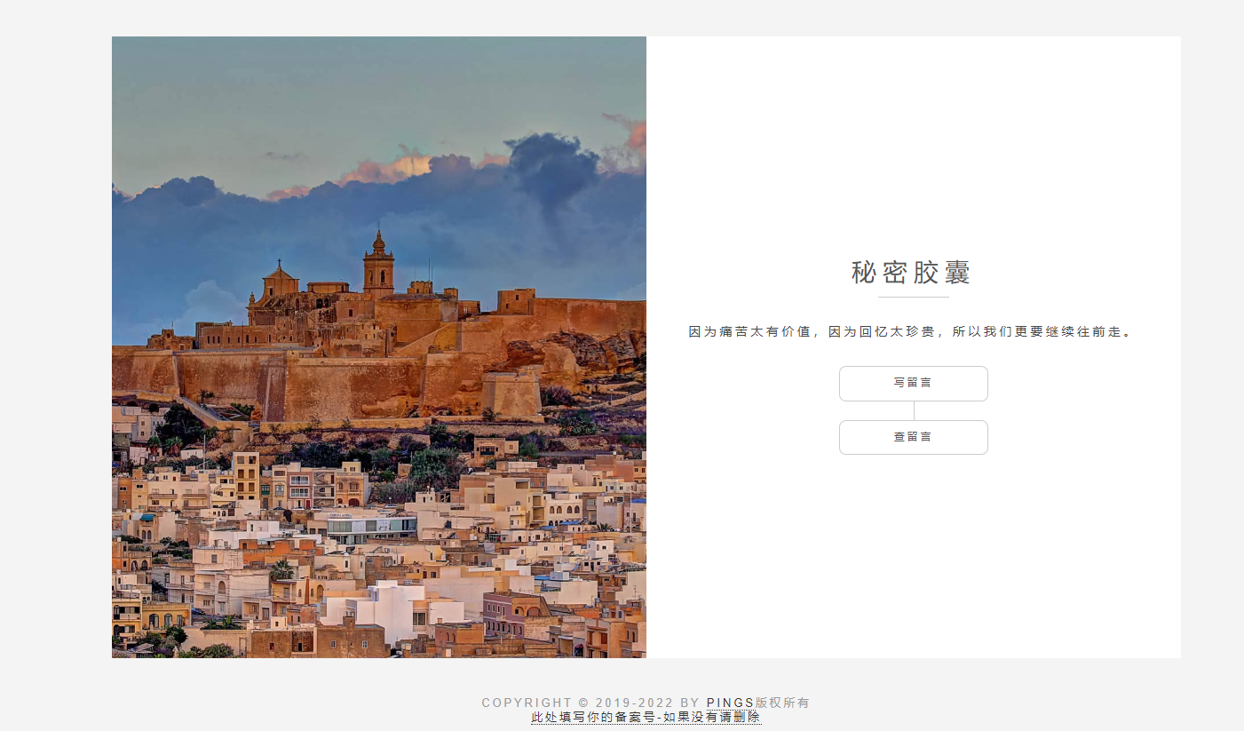 秘密胶囊程序由Pings原创,所有代码均为手动编写。本项目是秘密胶囊项目的最初版本,所有源码均未加密,各位有基础的自寻二开。本次开源的1.0版本只实现了写留言,查留言。 资源下载此资源下载价格为1U点点击检测网盘有效后购买,VIP免费立即升级客服QQ:305582964 联系邮箱:305582964@qq.com