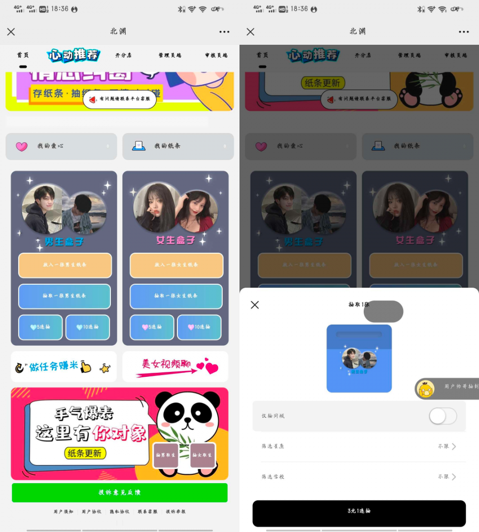 新增心动推荐可查看照片资料位置选择抽取 选择开关
