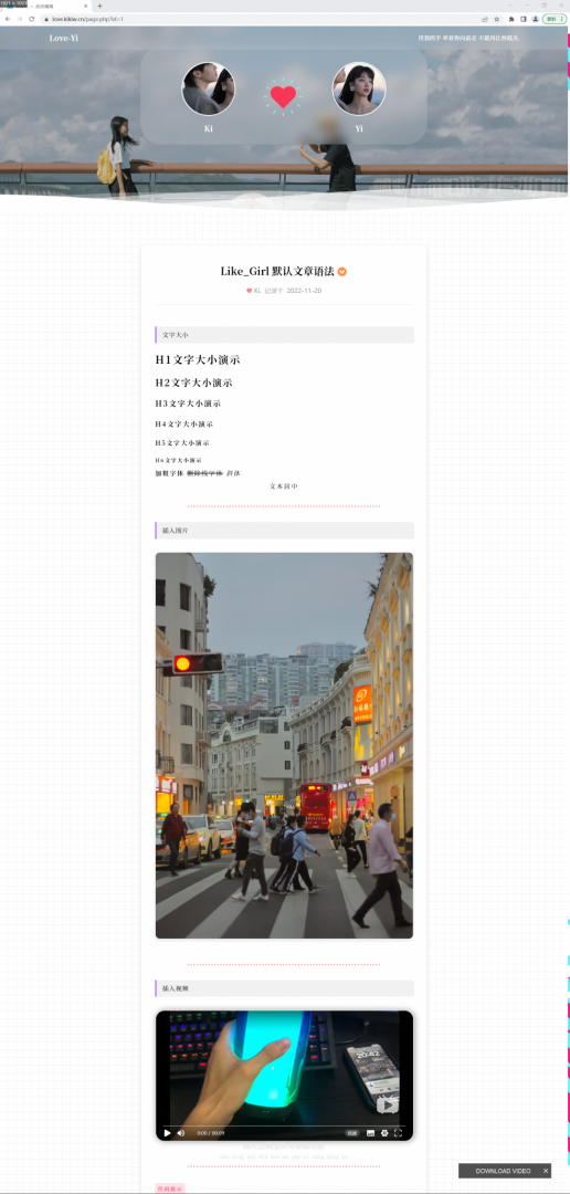 - LikeGirl4.0.0 增强表单数据处理 重构登录页逻辑 新增相册页 新增前端页面动画 优化留言页时间显示格式 优化书写文章选择发布着 优化留言页留言卡片、留言输入框样式
