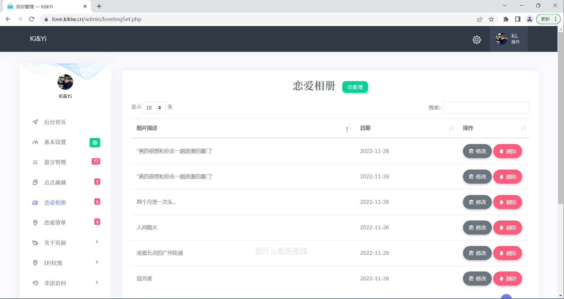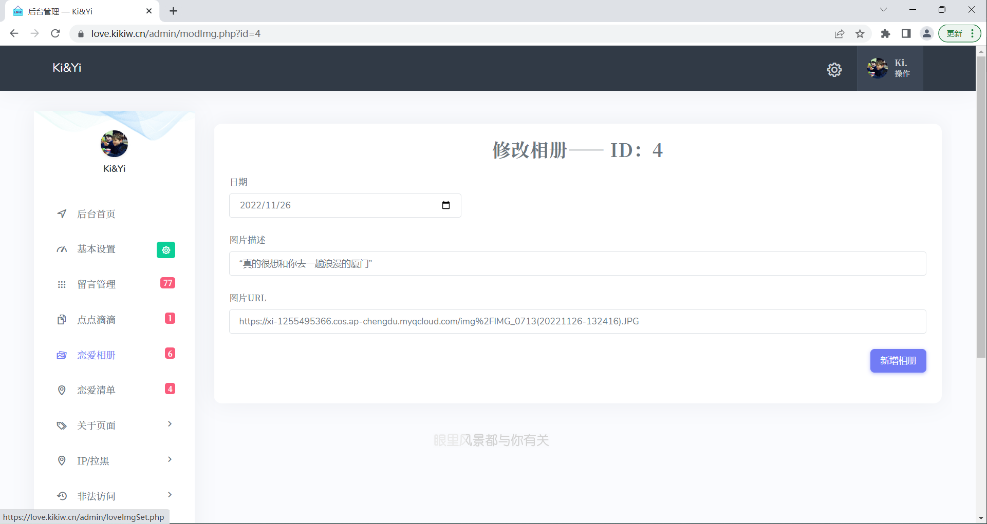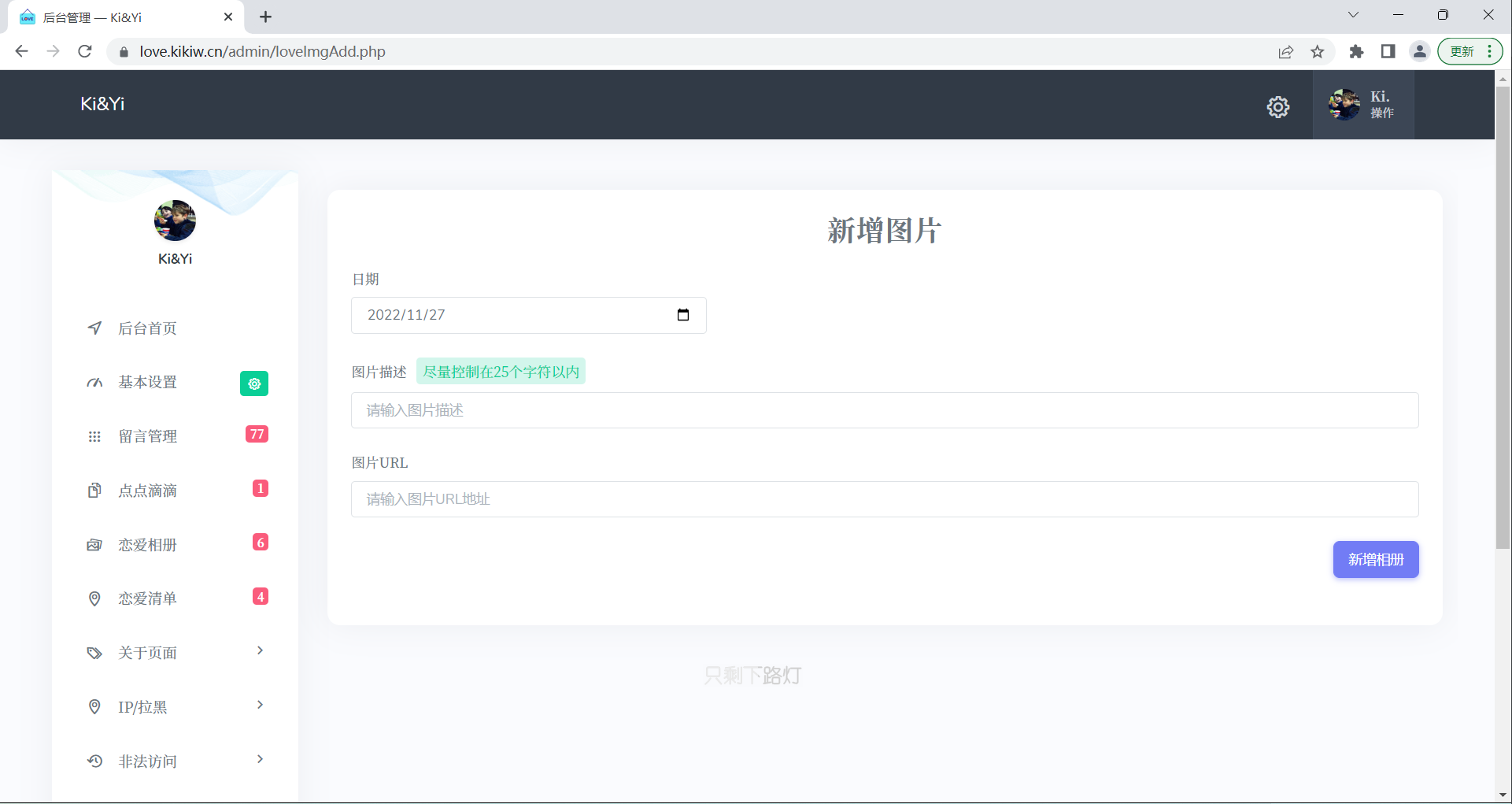 - 新增相册页 可在后台填写相关信息进行新增或修改删除