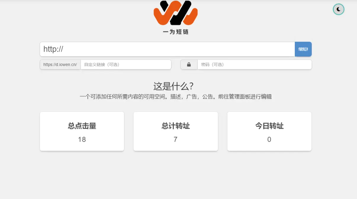 Shortny是一款国外的PHP短网址源码,程序非常小巧,但是功能是很多的,支持自定义后缀、加密访问,查看链接统计,而且还支持放广告,这个广告功能相信有些人会喜欢。界面也比较好看,支持白天/夜晚切换模式,由于官方的程序是收费的,所以这里博主提供的是由顶点网绿色的最新版Shortny v2.0.1,顺便说下安装方法和一些细节处理。