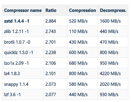 我们称 Zstandard 或 Zstd 是一种快速的无损压缩算法,是针对 zlib 级别的实时压缩方案,以及更好的压缩比。它由一个非常快的熵阶段,由 Huff0 和 FSE 库提供。这个项目是作为开源的 BSD 许可收费的库,以及一个生成和解码 .zst 格式。