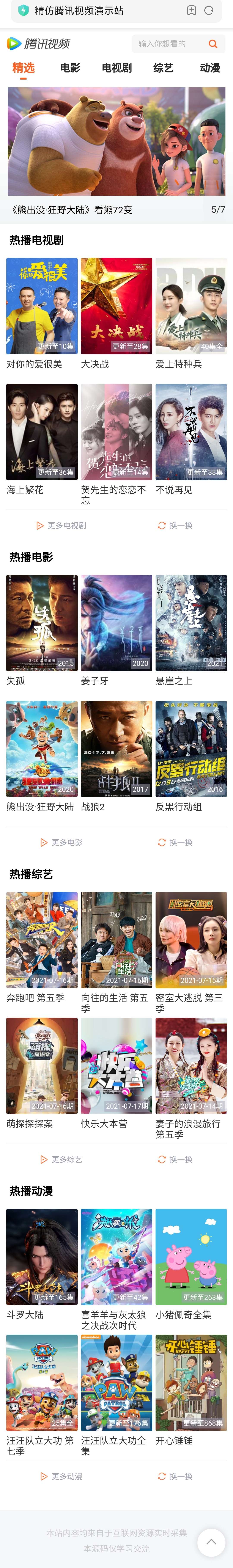 精仿腾讯视频源码,强大搜索功能,采用PHP实时抓取可用资源,程序运行非常快速,可以快速搭建一个属于自已的电影网站