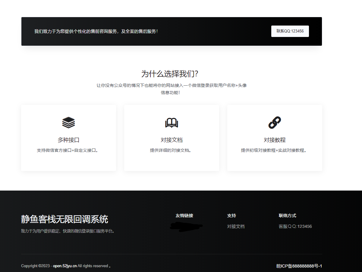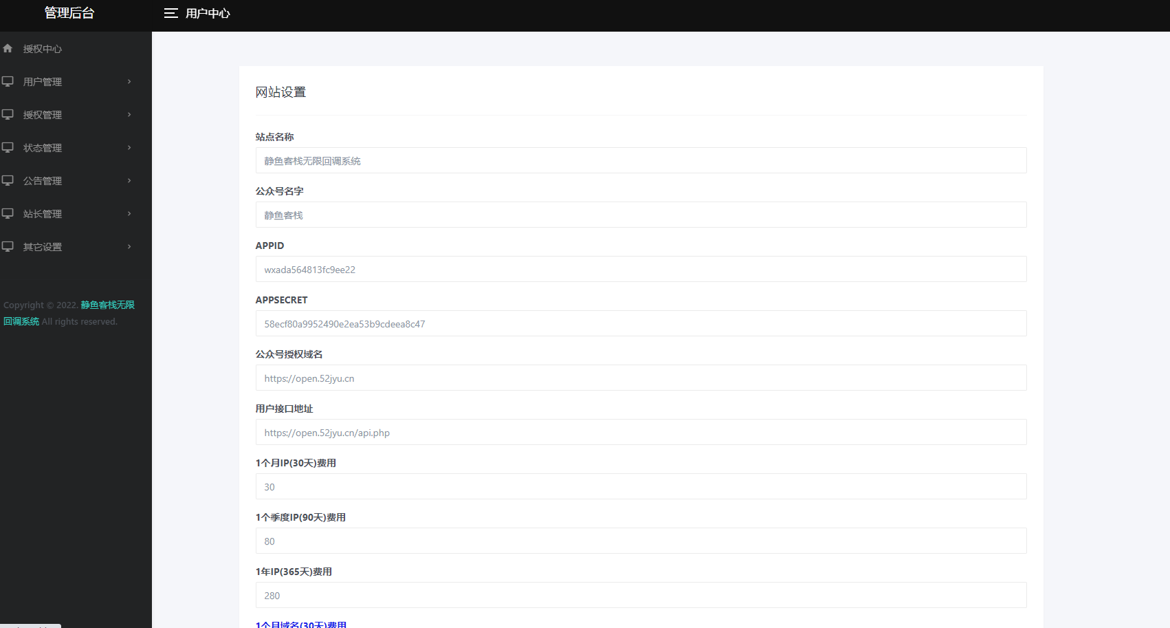 2023全新微信公众号无限回调系统源码 | 亲测可用 目前支持对接易支付,支持用户自助充值,自助购买授权,支持自助更换授权,支持自助续费授权 资源下载此资源下载价格为6.6U点点击检测网盘有效后购买,VIP免费立即升级客服QQ:305582964 联系邮箱:305582964@qq.com