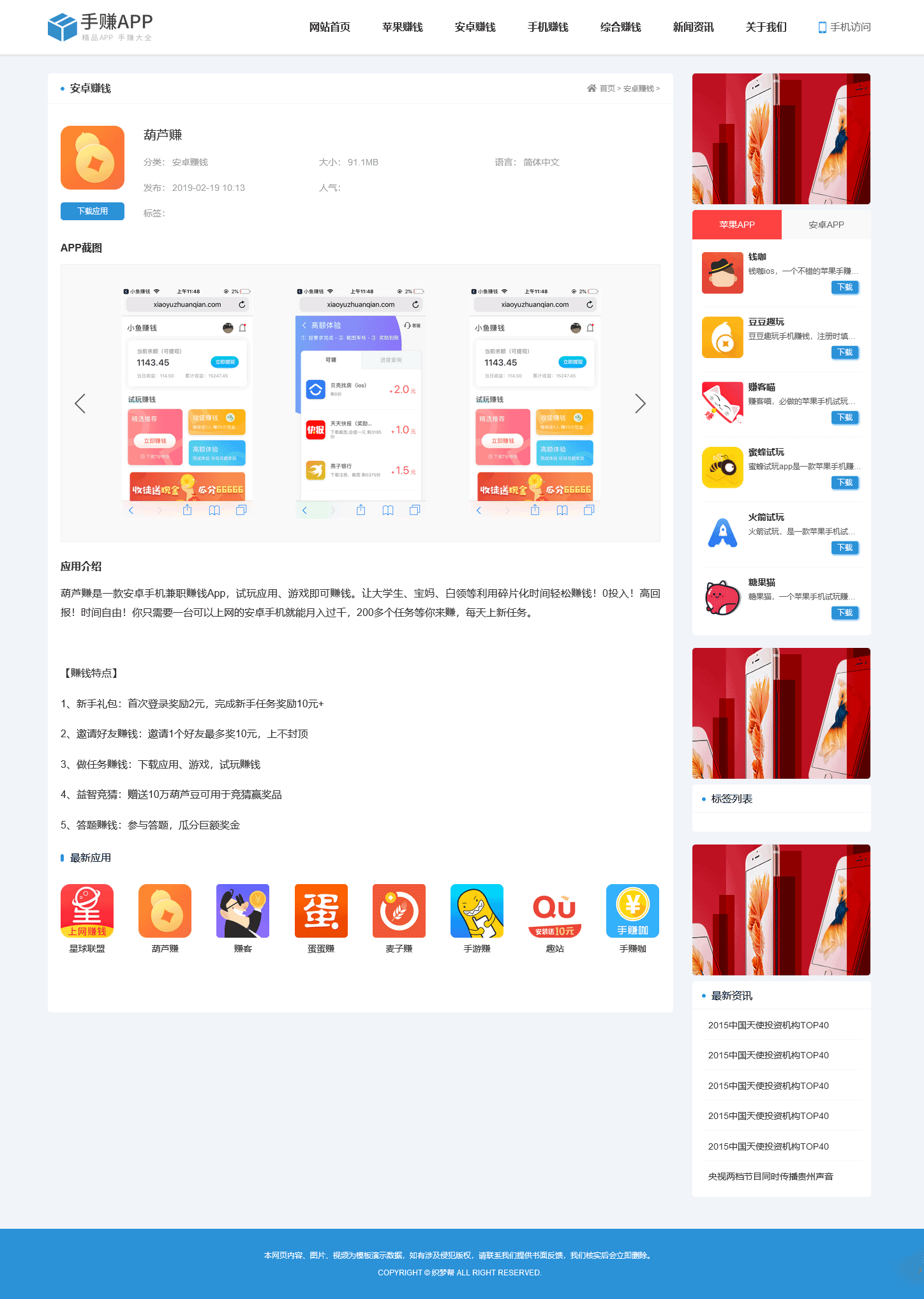 主要有:主页、app列表页、app介绍详情页、新闻资讯列表、新闻详情页、关于我们等模块页面。