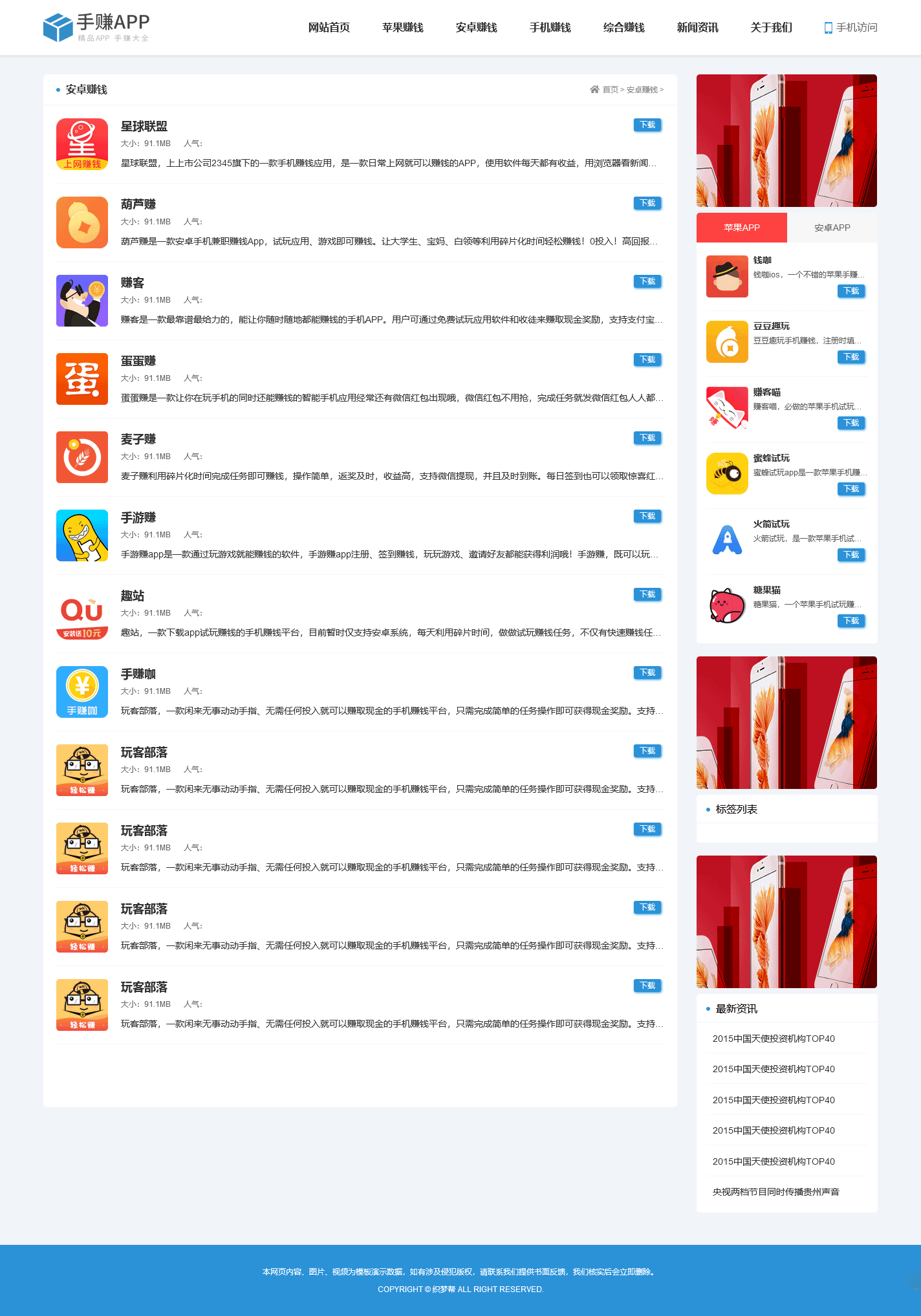 一款简洁蓝色的手机软件应用app下载排行,app下载平台,最新手机app发布网站响应式织梦模板。
