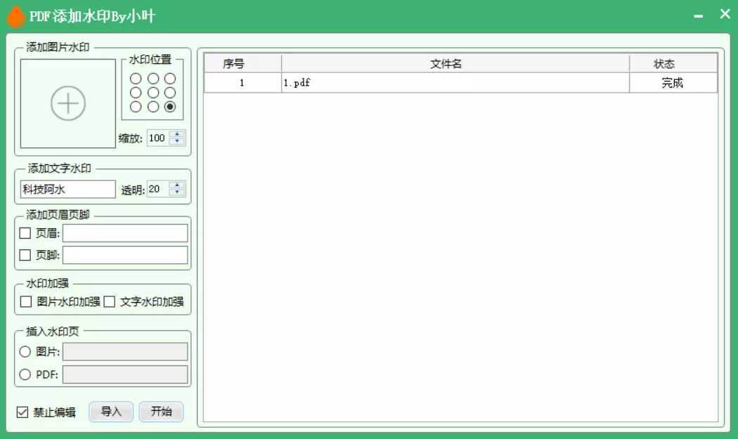 可以去除水印,当然也可以添加水印,这里我们可以自定义添加图片、文字水印,并且可以设置水印位置、透明度、水印加强、并且还贴心的给出了禁止编辑选项,可以说非常的强大了!