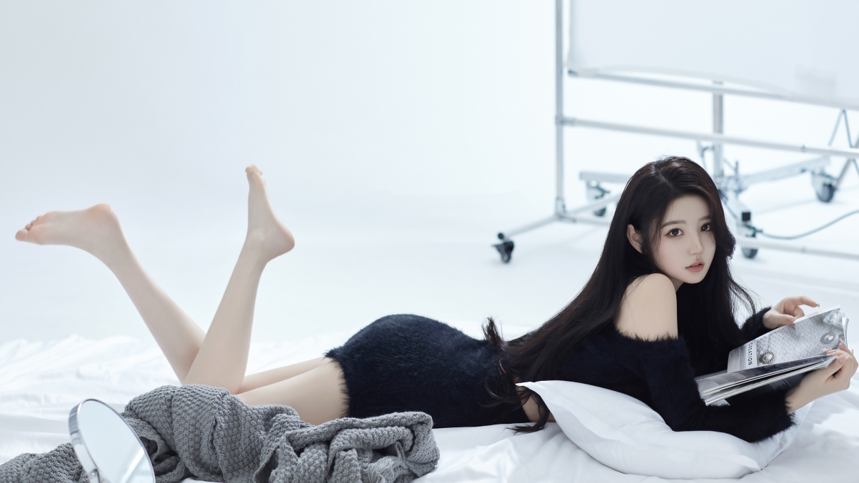 长发可爱美女 黑色毛衣包臀裙 美腿 5k高清壁纸