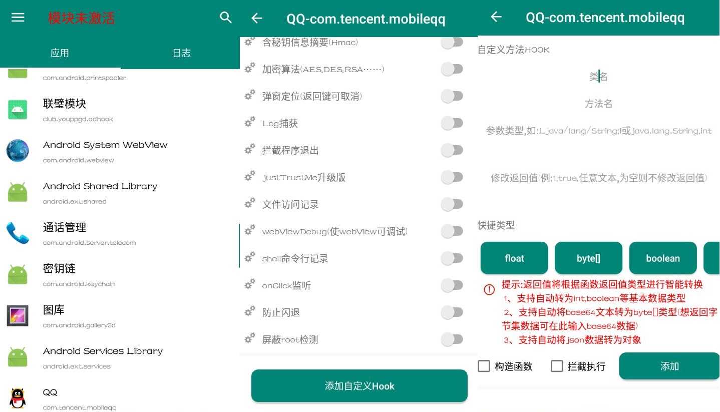 军哥编写的Hook工具,经常逆向安卓软件的朋友经常需要分析各种加密算法,还有数据的sign算法,由于静态分析效率太低,起初使用的是logcat打印日志,将密文,密钥,明文,md5前的信息,MD5后的信息等信息打印出来,但是很快发现了一个问题,在数据量大的时候,密文很多,密钥也很多,打印信息太乱,经常会出现密文不知道对应哪个密钥,而且如果是动态秘钥,单纯的打印秘钥就显得没有意义了。算法助手能够将秘钥,密文,明文,联系起来,并打印出调用堆栈。使用切简单方便。喜欢逆向的朋友下载使用吧。