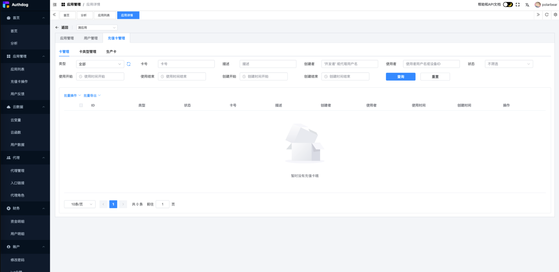 提供卡类型管理、生产卡、卡管理、卡禁用启用、卡重新生成卡号等诸多功能