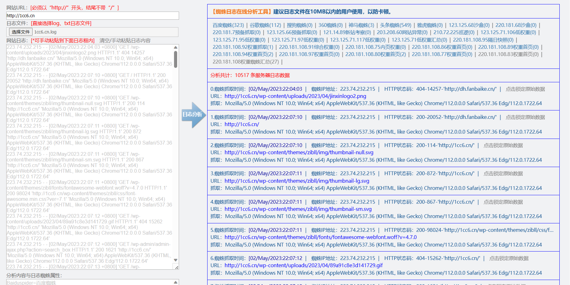 如果是 linux 宝塔面板 的服务器自然环境,大家登陆宝塔面板linux控制面板后,点一下左边“文件”,在www下的wwwlogs文件目录中就能见到网站访问日志了, ps:经实测,Windows系统的服务器沒有日志记录功能。 将网址日志全部內容拷贝到左边,随后点一下剖析按键,就能便捷的查询搜索引擎网络爬虫的抓取记录了。 资源下载此资源仅限注册用户下载,请先登录客服QQ:305582964 联系邮箱:305582964@qq.com