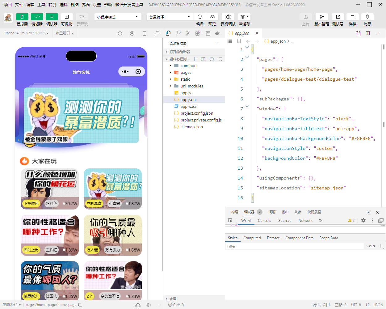 静鱼客栈 APP/小程序/源码 全新UI趣味心理测评微信小程序 自带流量主 免服务器即可搭建 https://wp.muooy.cn/22518.html