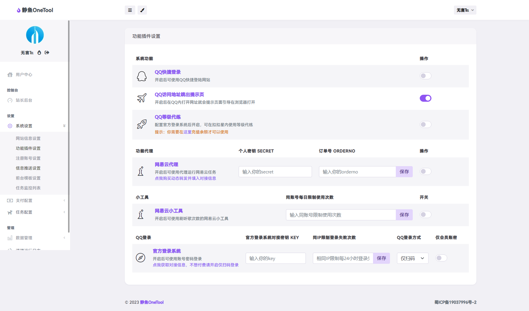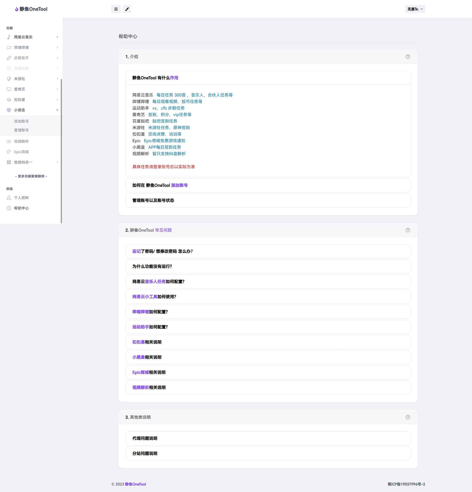可以帮助用户快速完成各种任务。例如网易云音乐每日签到、每日云贝、打卡 300 首歌曲、音乐人每日任务等;WX 运动健身记步范围设定, QQ 空间秒赞秒评;哔哩哔哩视频短片每日签到、每日在线观看、投币机、动漫作品每日签到、分享视频、天选抽奖活动;百度贴吧签到;爱奇艺 VIP 每日任务、每日抽奖活动、二端每日签到等等,都可以通过 OneTool 进行快速操作。
