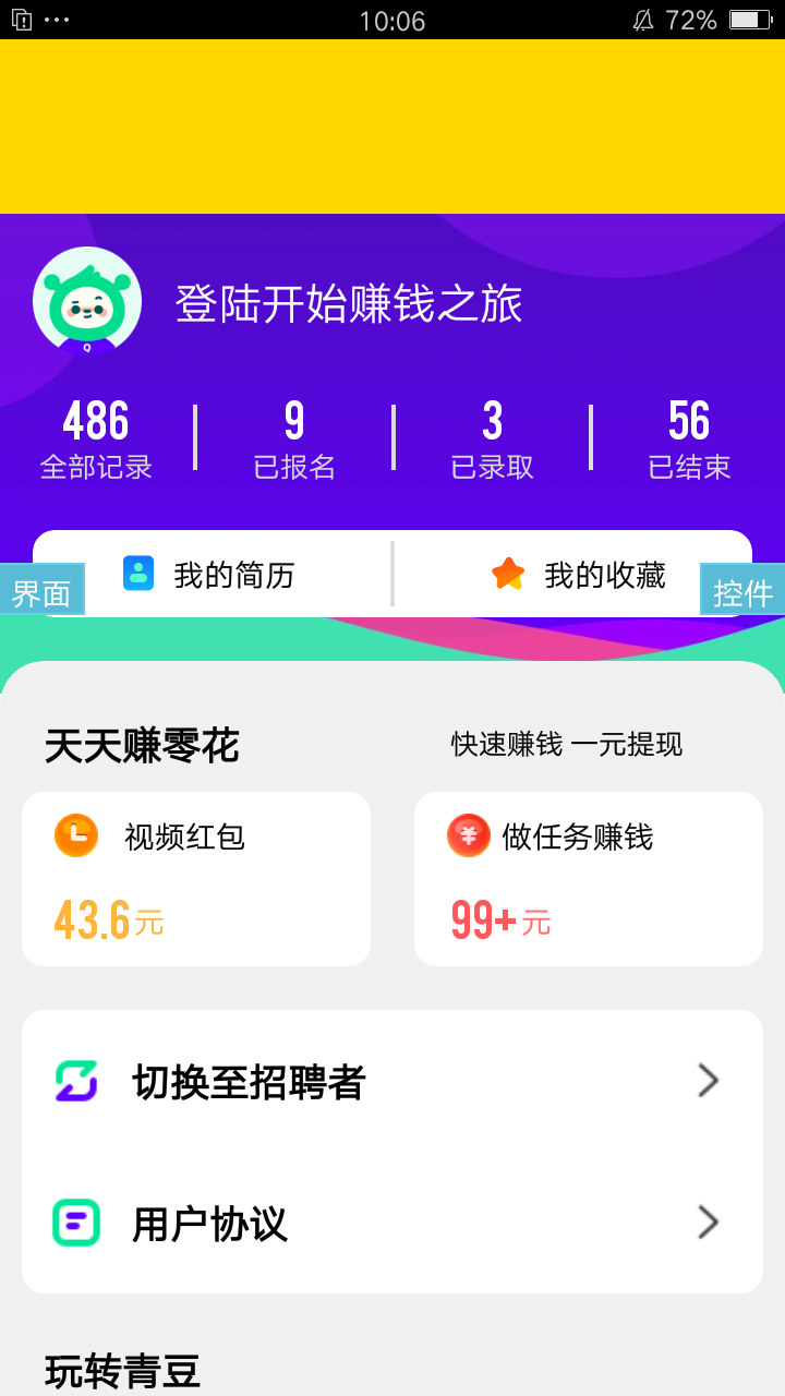 这款软件UI界面很好看,然后就模仿一下软件的个人主页,写出了之后,感觉很好看,UI bing不是全部模仿,小细节没模仿(没实际用途),全面屏手机可能出现控件没对齐(懒),自己调一下