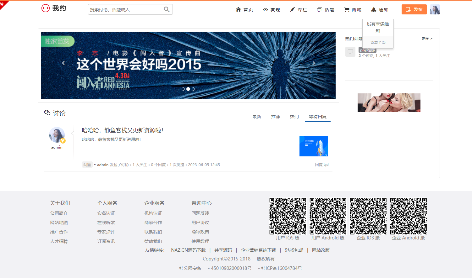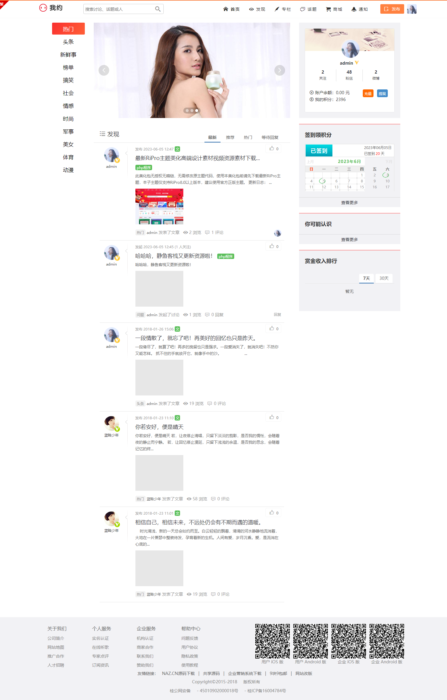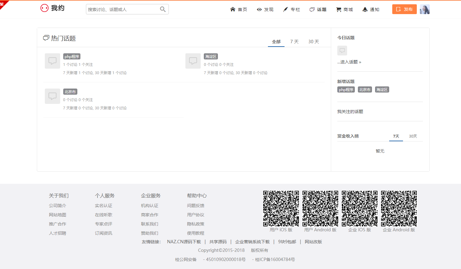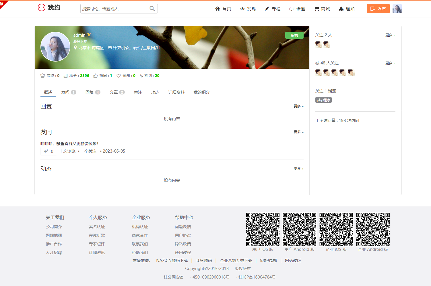我约微博仿新浪微博/打赏功能/内容付费功能/问答系统/专栏/商城/打赏/充值/图集功能。