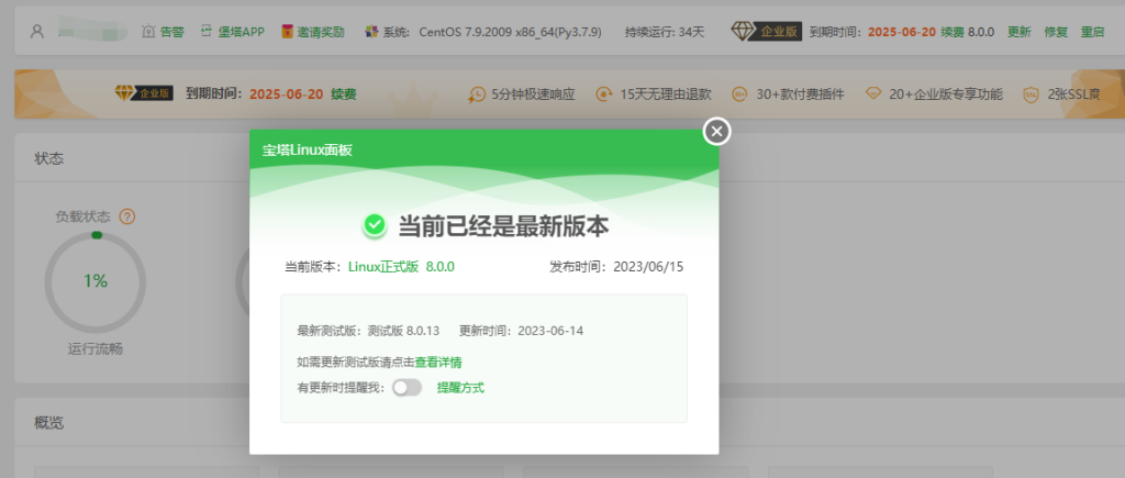 已安装宝塔官网(免费版):直接执行下面的 “Linux 面板 8.0.0 升级命令: