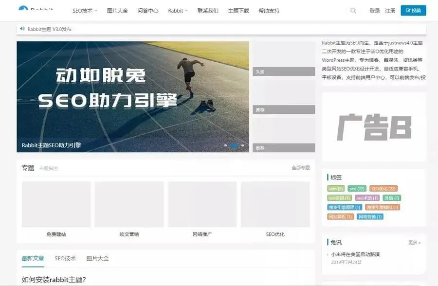 一款专注于SEO优化的WordPress主题,特别为博客、自媒体和资讯类网站设计开发,支持手机和平板设备的自适应,并提供前端用户中心功能,用户可以在前端发布和投稿文章。此外,该主题还支持文章专题功能,用户可以添加文章专题。
