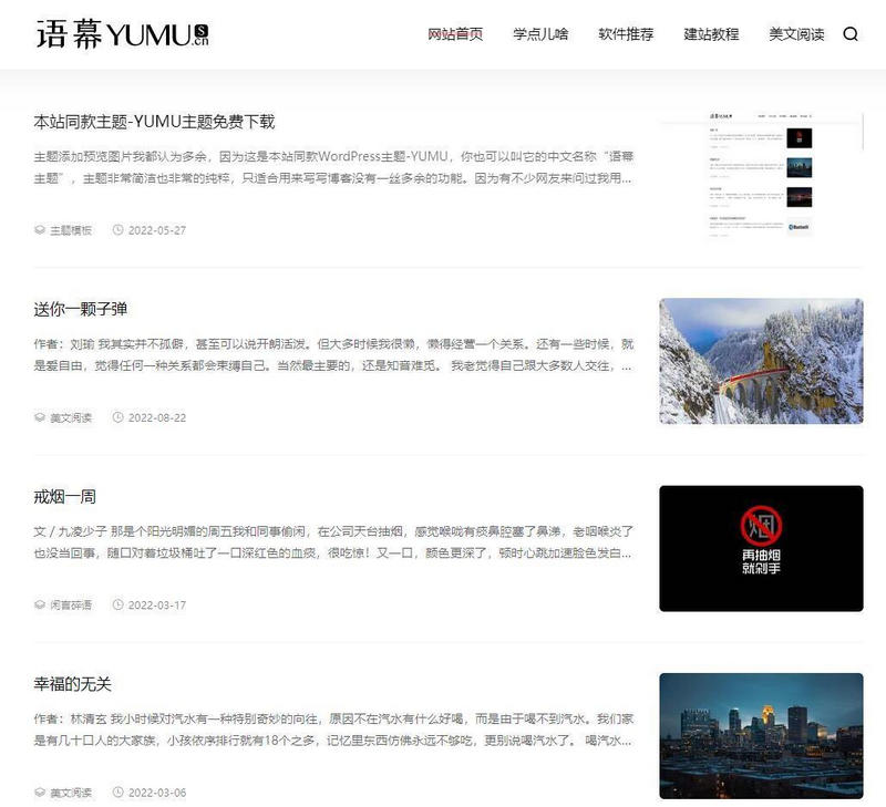YUMU v2.0是一个非常简洁纯粹的WordPress博客主题,非常适合用于撰写博客,没有多余的功能。作者经过深思熟虑后决定将主题开源,与大家共享,也算是回馈社区。