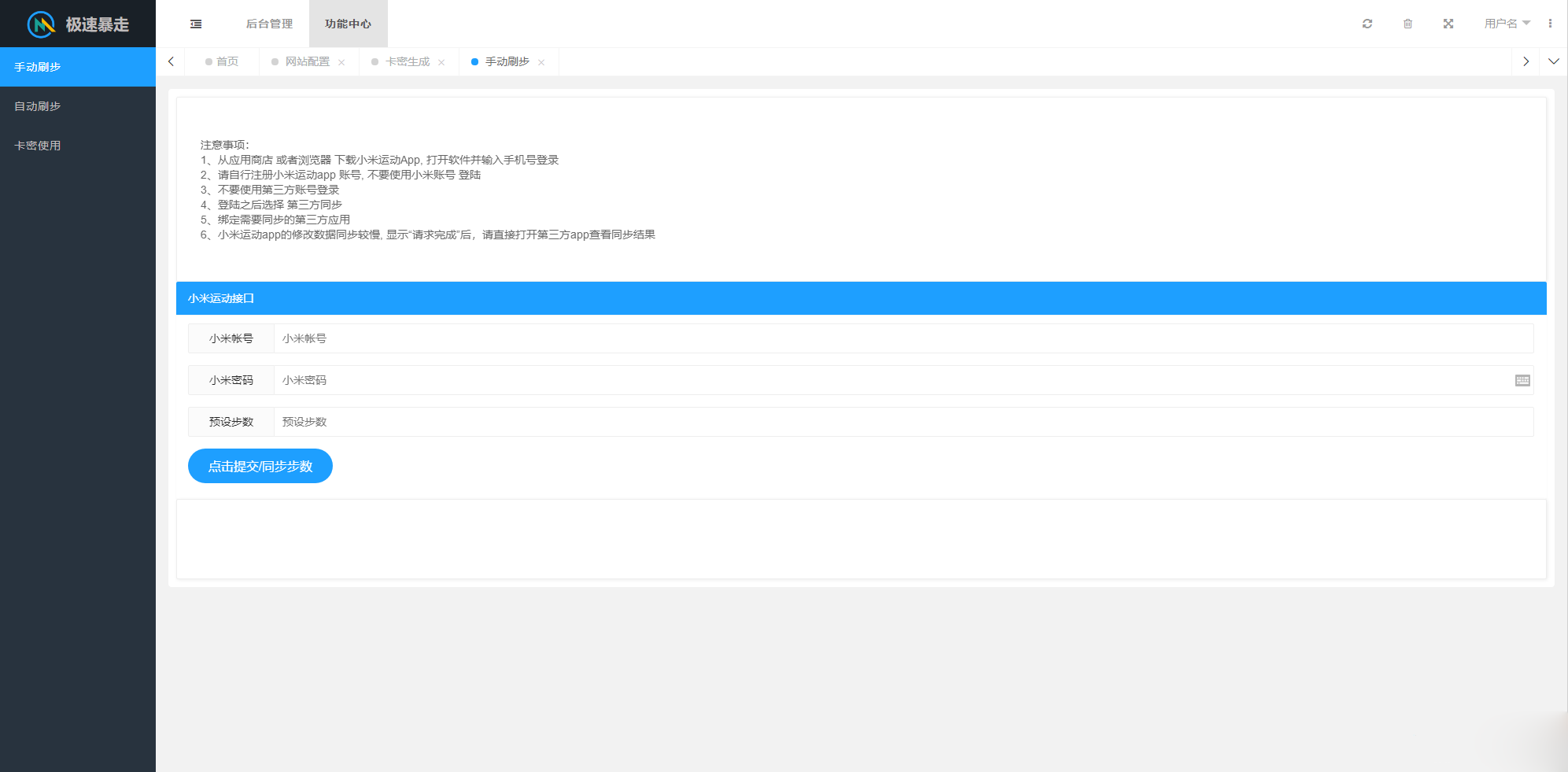 使用该源码,用户只需要使用提供的卡密进行提交,即可实现每日自助修改步数。通过微信接口,用户可以方便地修改步数,满足个人需求。