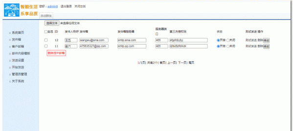 2. 发件箱的批量导入、批量删除和自动校验去重