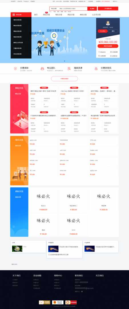 4. 本系统可以用于网站交易、域名交易、网店交易、商标交易、微信公众号等各种交易形式。