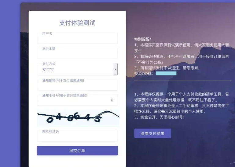 本系统适用于个人收款码支付,适用于订单量较小的个人使用。系统支持订单审核功能,并可通过短信和邮箱通知用户(需要进行配置)。