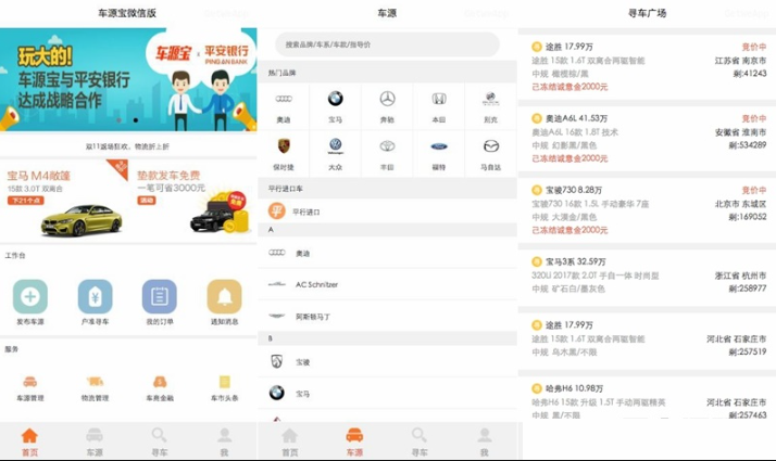 该模板包含了车源宝客户端的部分功能,如首页、车源、寻车和登录等页面。