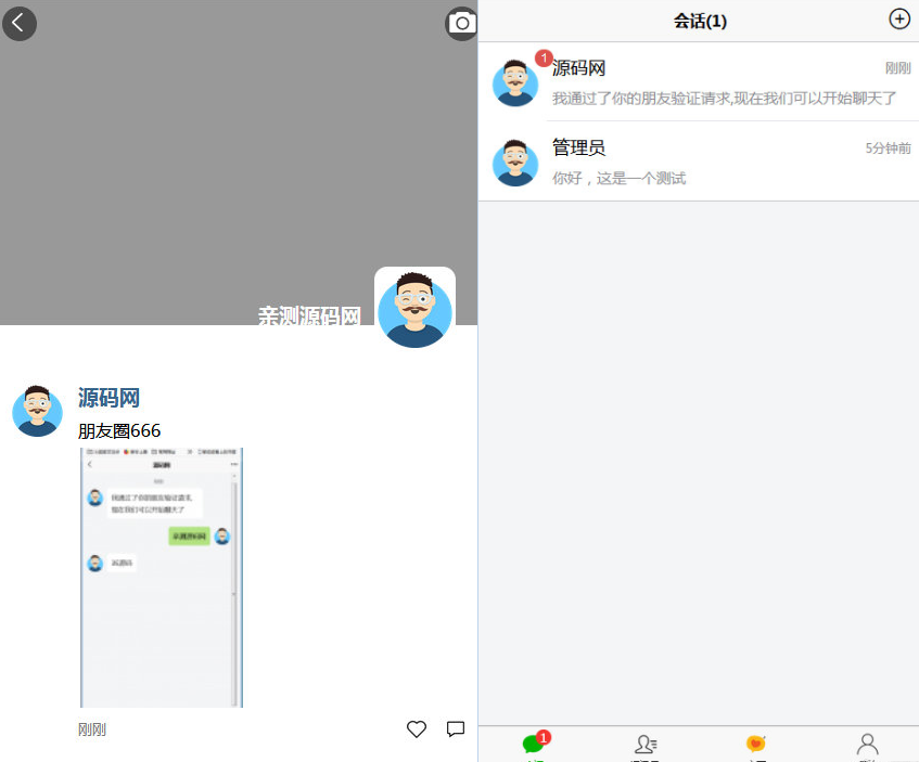以下是H5即时通讯聊天系统的源码,具备IM聊天、交友、客服平台功能,可封装为APP应用,并支持群聊和添加好友功能。