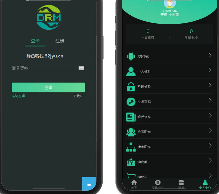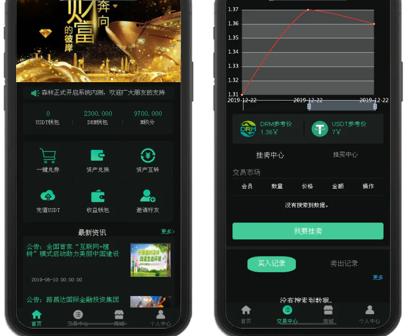 『DRM森林区块商城』——种树区块系统带交易中心、直推系统、分红、在线挖矿、金融投资理财H5源码