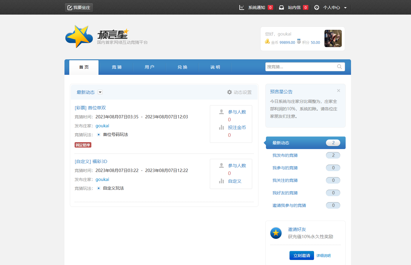 大家好!今天我想和大家分享一个非常有趣和实用的开源项目——预言星开源互动竞猜平台源码。如果你正在寻找一个简单的方法来创建自己的互动竞猜项目,那么这款源码一定会对你有所帮助。