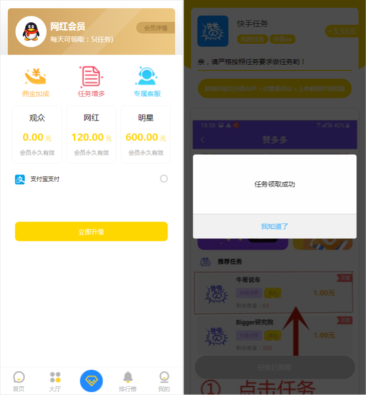 此外,我们还提供了抖金源码,可以将这个点赞任务平台封装成一个APP,方便用户在手机上使用。