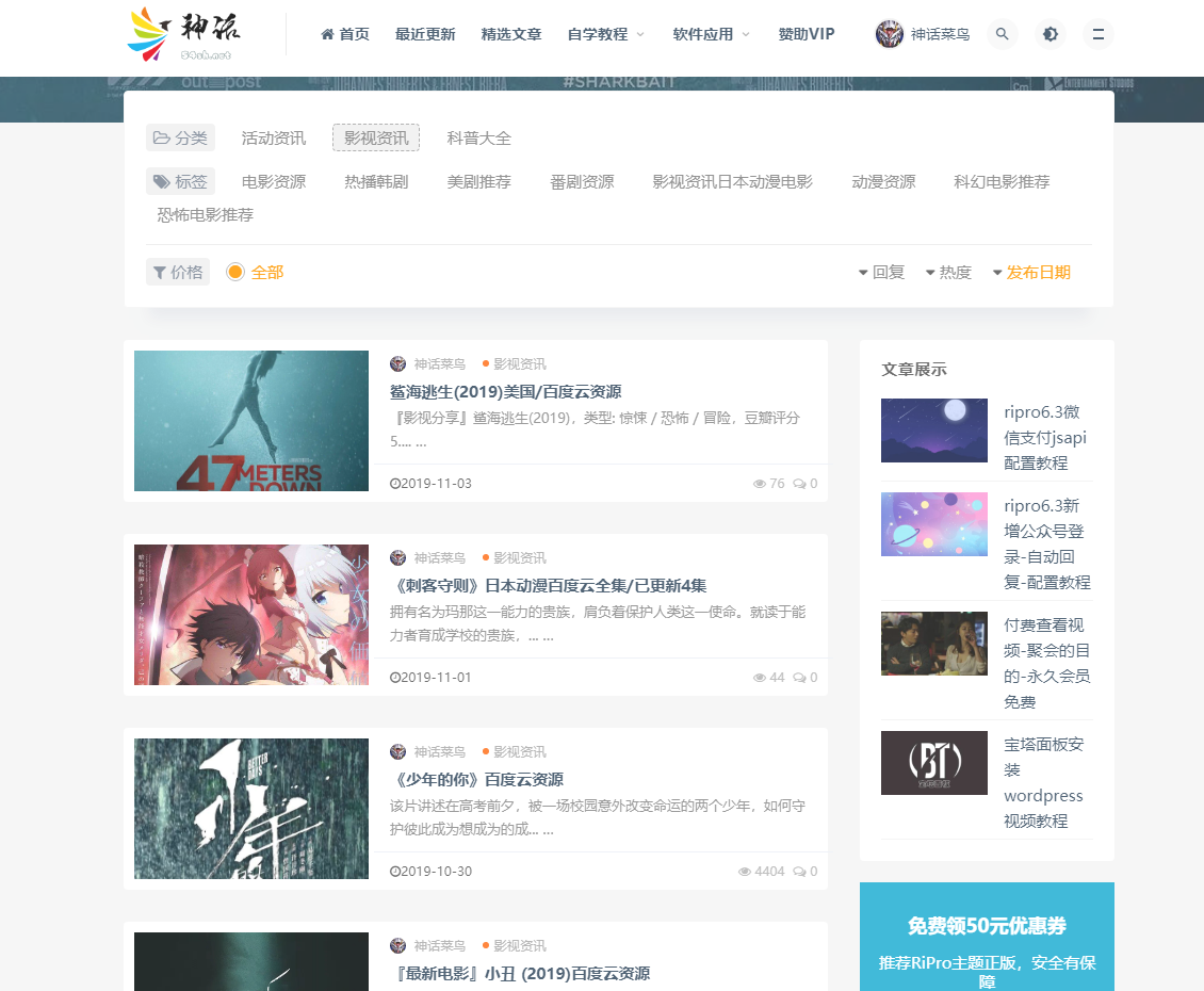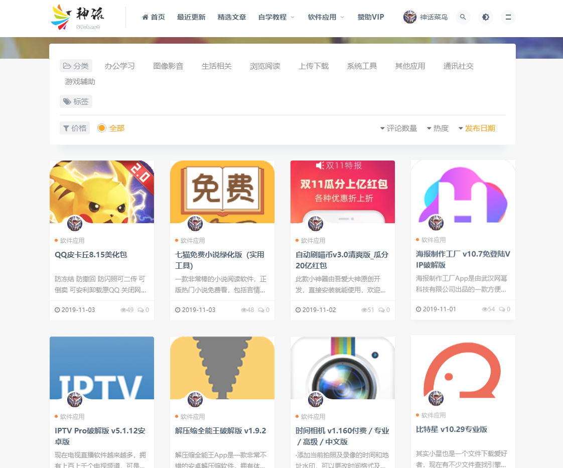 5. 重新优化修复了文章和下载列表的付费、免费、评论和热度排序功能。
